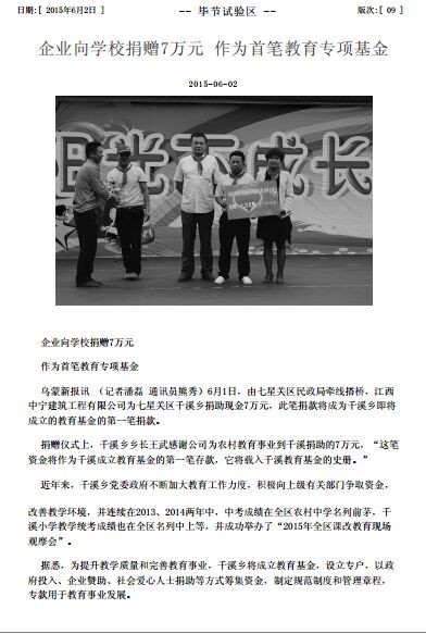 2015年6月1日,值六一兒童節到來之際,在貴州省畢節市干溪鄉干溪小學,舉辦了一場“六一兒童節活動”,江西省中寧建筑工程有限公司董事長胡少棟先生親臨現場,和孩子們一起享受著快樂時光。
