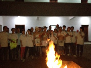 帶著高空溜索的運(yùn)動速度和羅馬駕炮的愉悅心情,我們點(diǎn)燃了季秋的篝火晚會。胡總的晚會致詞時(shí)刻在我耳旁回響:“各位嘉賓、公司全體同仁及百祥拓展的各位老師,大家,晚上好!非常感謝大家,在百忙之中參加中寧公司成立四周年的慶祝活動,在這隆重而又喜慶的日子,我們共同分享這份屬于大家的快樂!……”。參加晚會的嘉賓當(dāng)中,有中寧公司多年的合作伙伴,真是一握中寧手,永遠(yuǎn)是朋友。