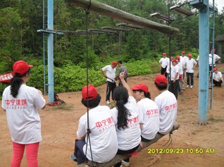 緬甸橋,看到隊(duì)友們一個(gè)個(gè)的跨過去,有輕松的,有拘謹(jǐn)?shù)模业膬?nèi)心有些緊張。當(dāng)我慢慢的爬上橋面,心里有些恐慌,這時(shí)才體會到“舉步維艱”的處境,這時(shí)才意識到眼高手低,站在高空當(dāng)中,猶豫不決,腿有些顫抖,心里浮現(xiàn)出掉下去的景象,恐懼和困難在我眼前不斷的放大。緬甸橋下,教練、隊(duì)友、胡總的鼓舞聲一直在橋下象波浪一樣拍打著我停滯的雙腿,正是因?yàn)橛辛诉@種鼓勵(lì),我笨拙的跨到了橋的對面,在那個(gè)時(shí)候,心情豁然開朗,返回陸地的感覺,輕松自如。也許,眼前的困難并不可怕,可怕的是我們內(nèi)心的恐懼和被不斷放大的困難程度。內(nèi)心的屏障阻礙了我們的解決困難的勇氣和步伐,此番的經(jīng)歷與感受,讓我受用一生。