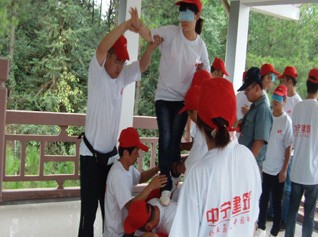 團(tuán)隊(duì)組建(破冰、分組)是整個(gè)活動的第一節(jié)科目,這樣就形成了即互相競爭又相互協(xié)作的兩個(gè)小隊(duì):飛豹隊(duì)和野狼隊(duì)。站在飛豹的隊(duì)伍里,我感受了自己角色的成長,目視眼前的野狼隊(duì),我感受到中寧公司隊(duì)伍的壯大。